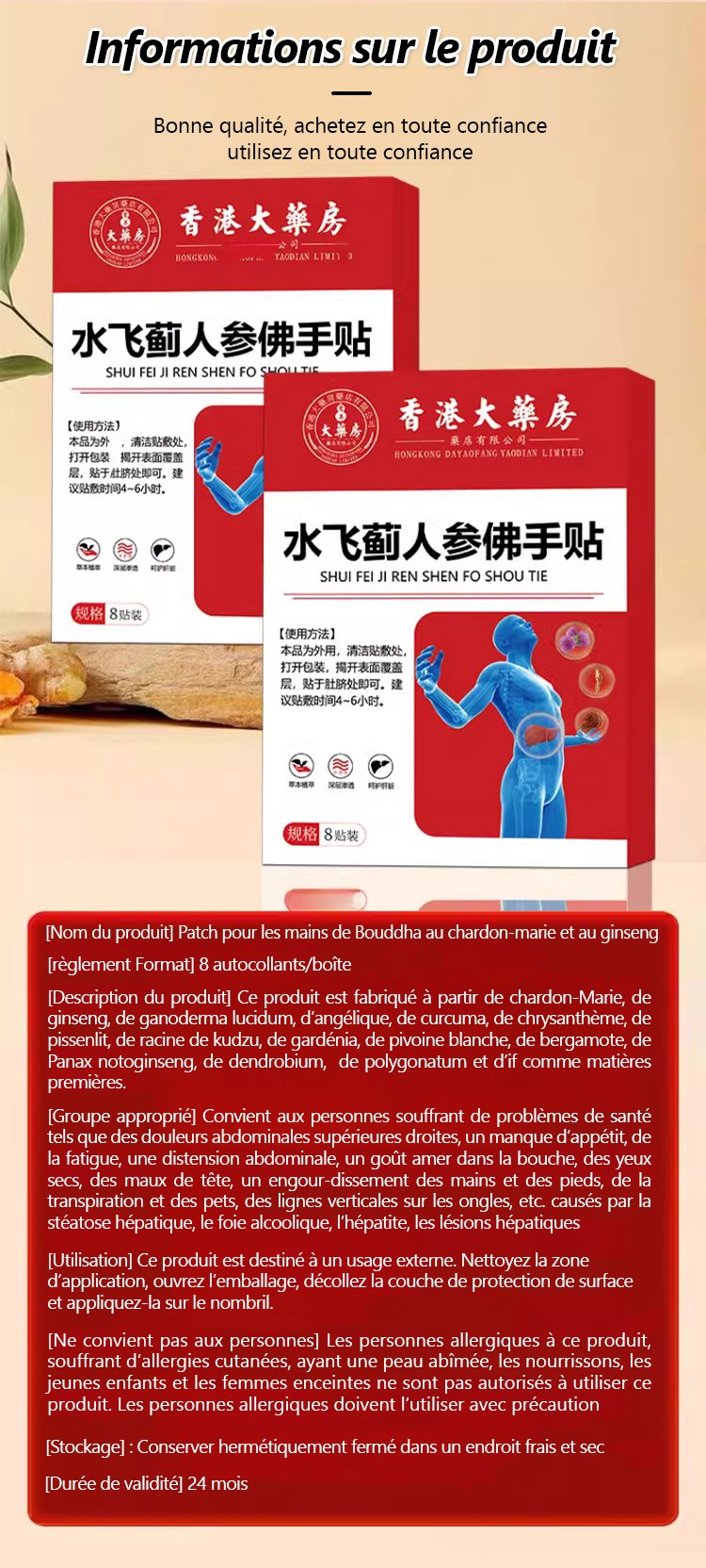 Pharmacie Shizhen de Hong Kong Patch de Chardon-Marie, Ginseng et Bergamote